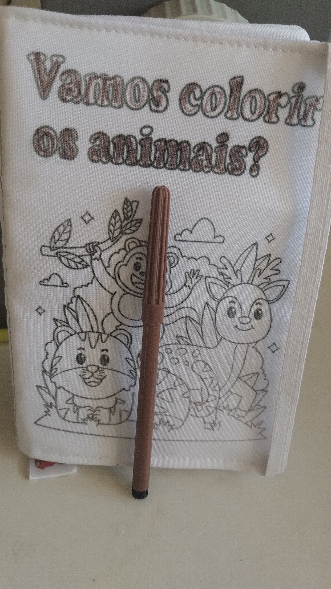 Um livro de tecido lavável para pintar e depois lavar.